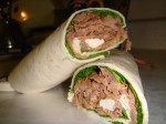On today’s Lombardo lunch menu, we have shredded brisket, buffala mozzarella, and spinach wrap with aioli, homemade white chocolate, macadamia nut cookie, Jazz apple, and beverage (water, naturale).