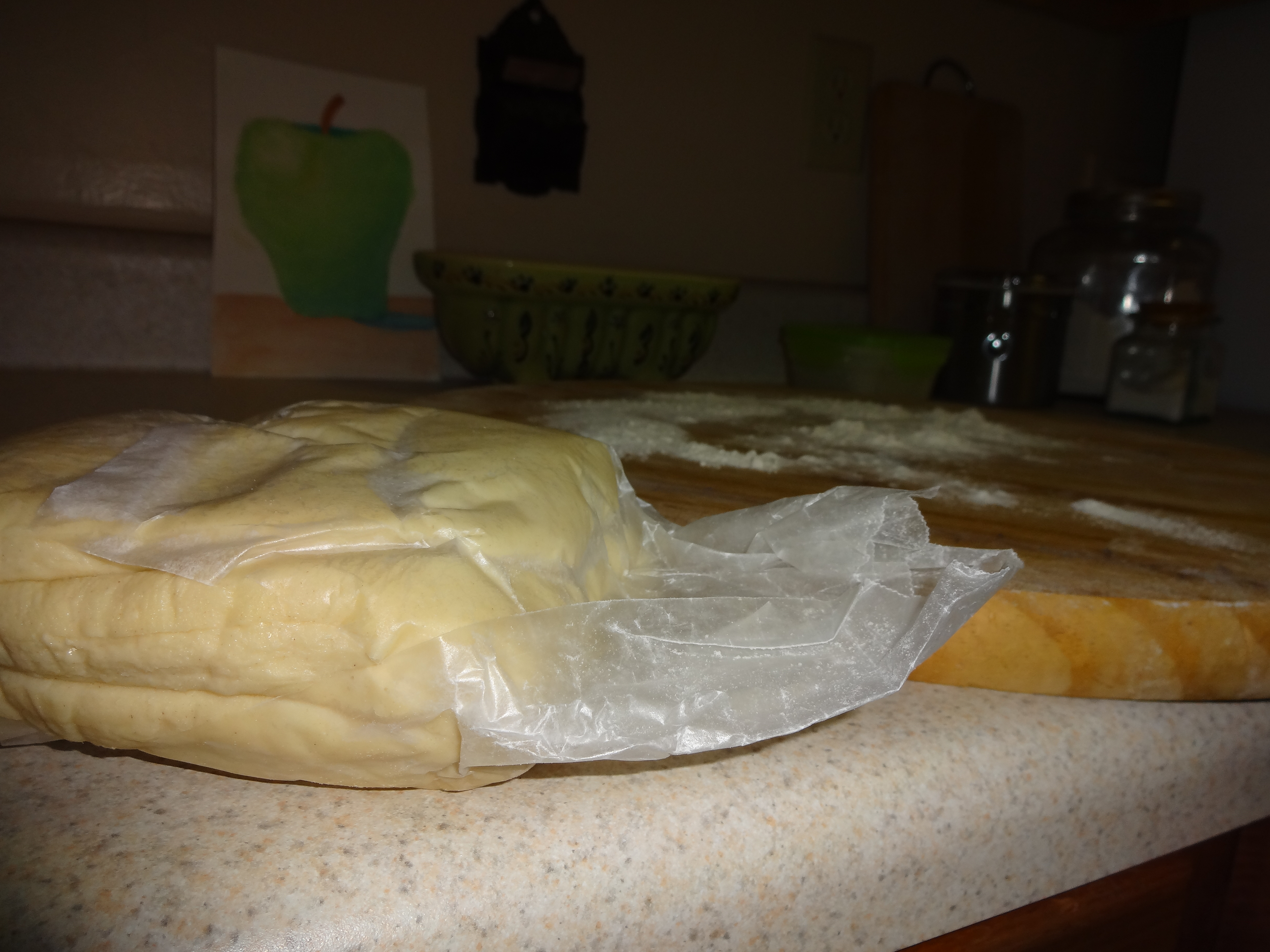 In another large bowl (or if you are fortunate enough to own a professional grade food processor… I do not) combine flour and butter. I use my hands to work this, being careful not to process too much, you want to see the butter! (If using the food processor, I assume you would pulse gently, also being careful not to over process). Add flour-butter mixture to yeast mixture, stir gently with wooden spatula, just until the ingredients are moistened. Note: DO NOT over work this batter/dough… you want to see distinct pieces of butter ~ it will be a gift to the layers, light and flakey pastry at the end! Cover bowl with plastic wrap and refrigerate overnight or up to 5 days.