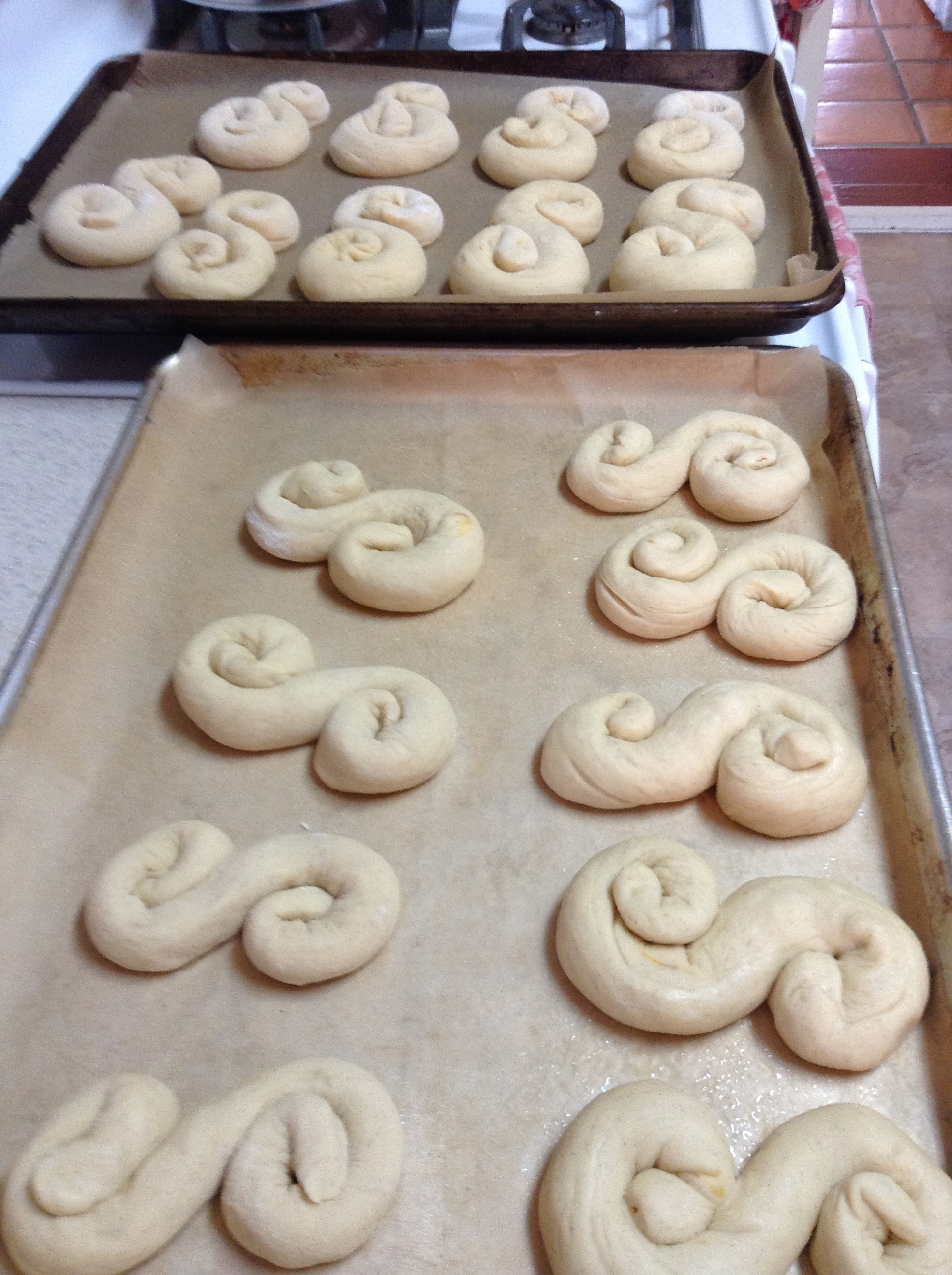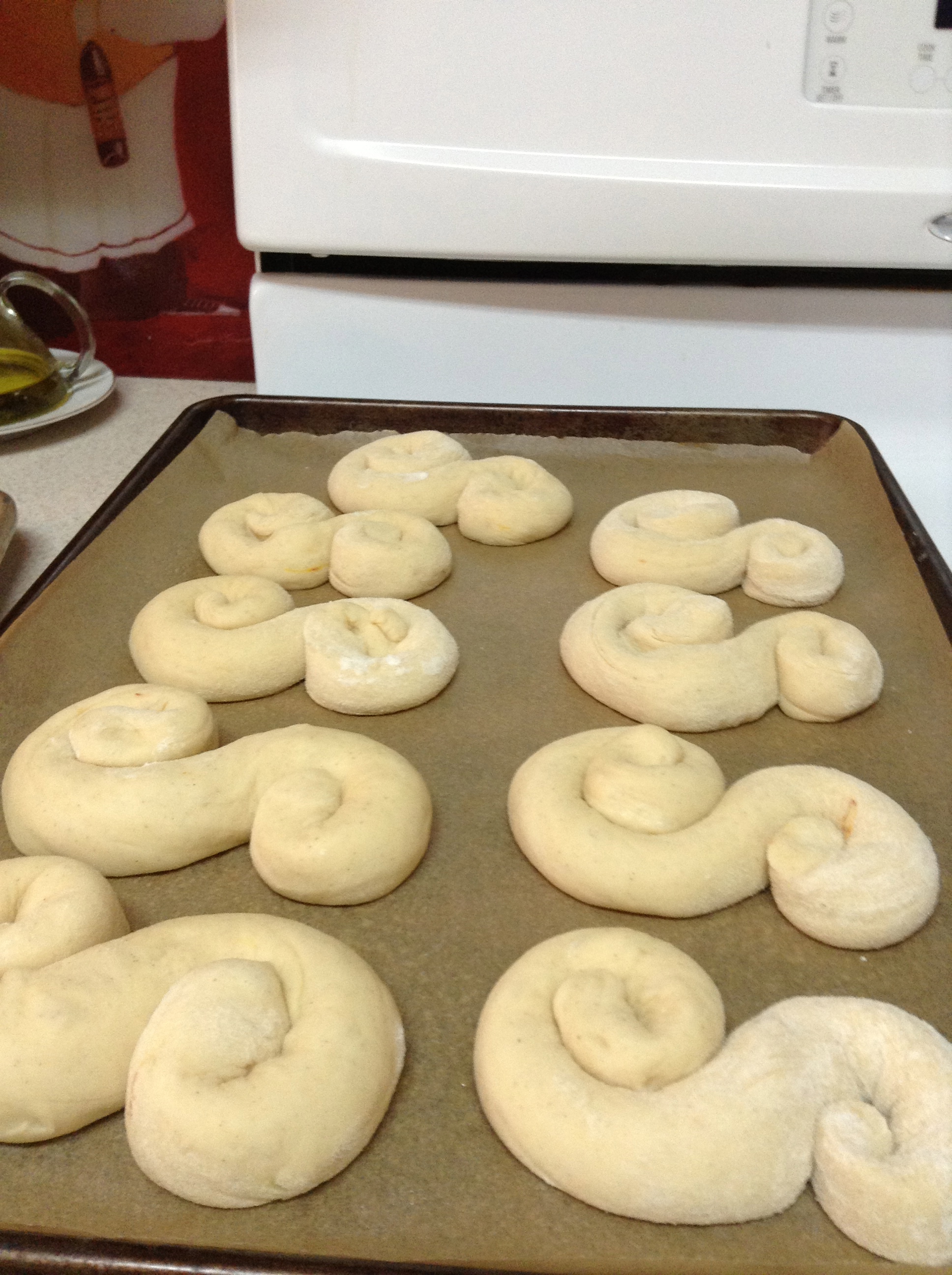 I just love making something that brings a certain look of satisfaction, love and longing to my family ~ this time, my husband. Tony came home last night, changed from his military uniform and went straight to the computer… strange. I asked what he was doing, and he said he thought about something his Mom used to make when he was little… Lucia Bread. Since her passing, I have tried lovingly to recreate and occasionally follow her [hand-written] recipes. She was an amazing woman and an incredible cook! Hard shoes to fill, but when Tony gets that certain look ~ a little dazed with just a whisper of a soft smile touching his lips, I know I’ve done it…