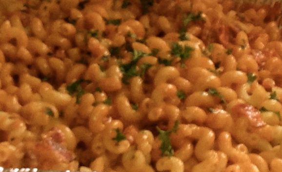 Cook pasta in a large pot of salted water; in a large skillet, melt butter; add bacon and garlic, allow to simmer 2 minutes; add tomato paste, parsley, crushed red pepper, salt and pepper, stirring until paste breaks down (about 2 minutes); add vodka and cream to tomato mixture, stir until well blended; allow to simmer on low heat for 6-10 minutes. Taste for season correctness, adding salt if needed (remember, your pasta should be well seasoned with salt, so don’t be too heavy handed with it in the sauce, but you do want to season each part individually; both pasta and sauce should taste just right on their own before you marry the flavors!).