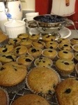 Combine dry ingredients in a large bowl; whisk wet ingredients in a large measuring cup, pour into dry mixture, stirring just until all is incorporated. Fold in berries. Fill lined & sprayed muffin cups about 3/4 full.