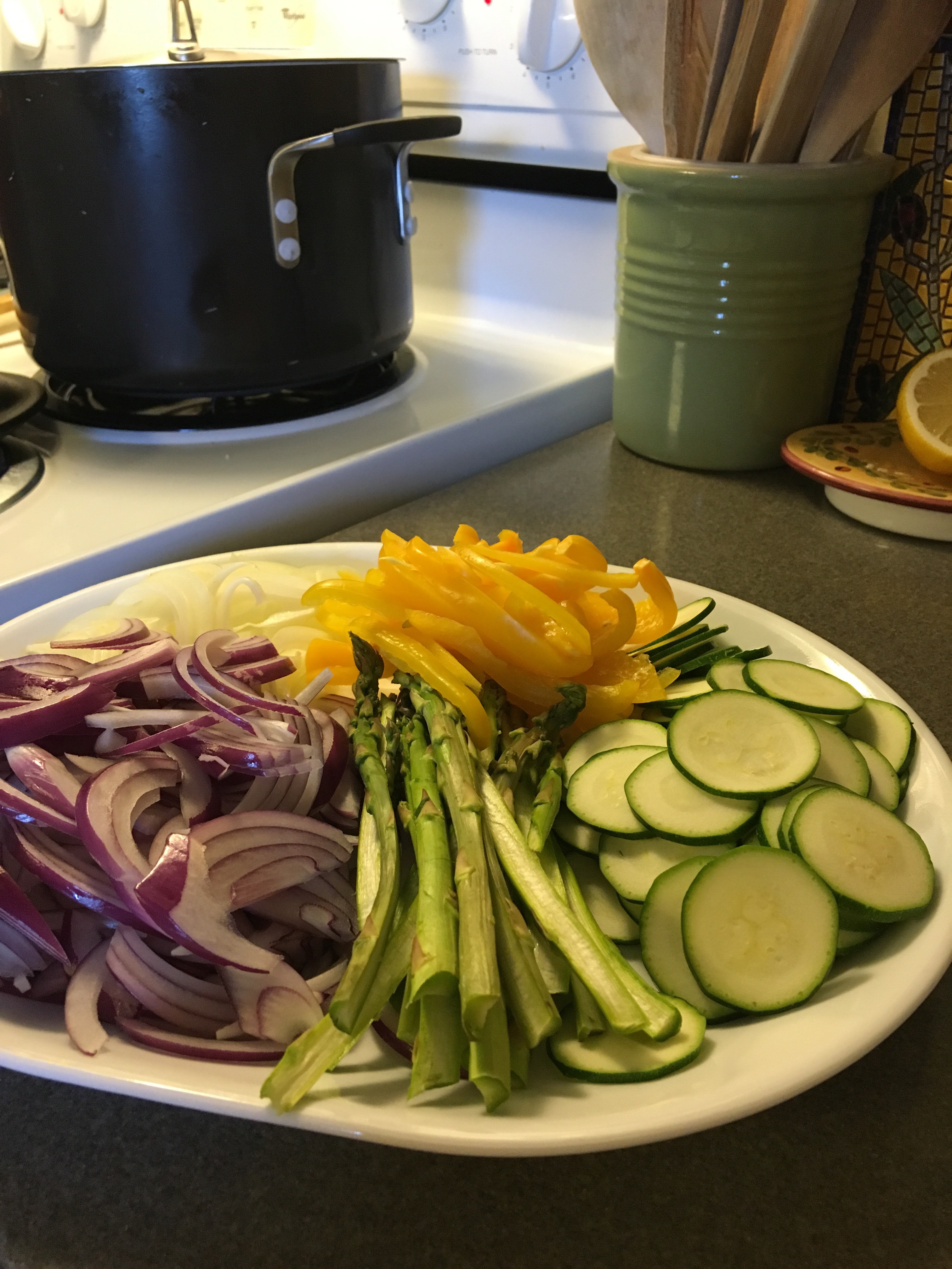 Today I will be serving tomato soup with potato and white beans, seasoned with sweet chili sauce and basil, served with crusty bread; salad and of course, pizza!