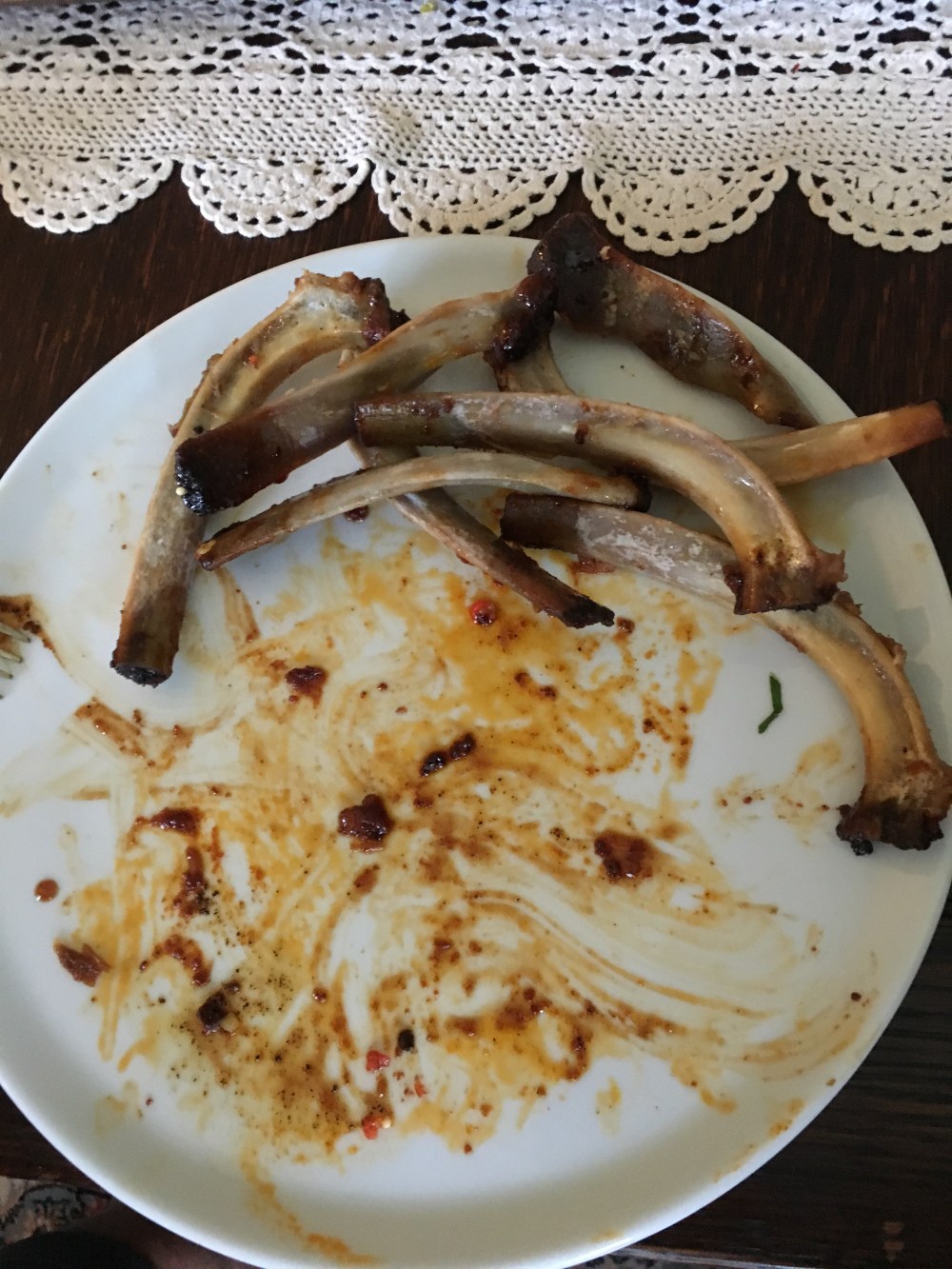 Meanwhile, place ribs over hot coals or on hot grill pan (use 1 T butter if using grill pan), allow to char slightly. Serve hot with a side of sauce and plenty of napkins!