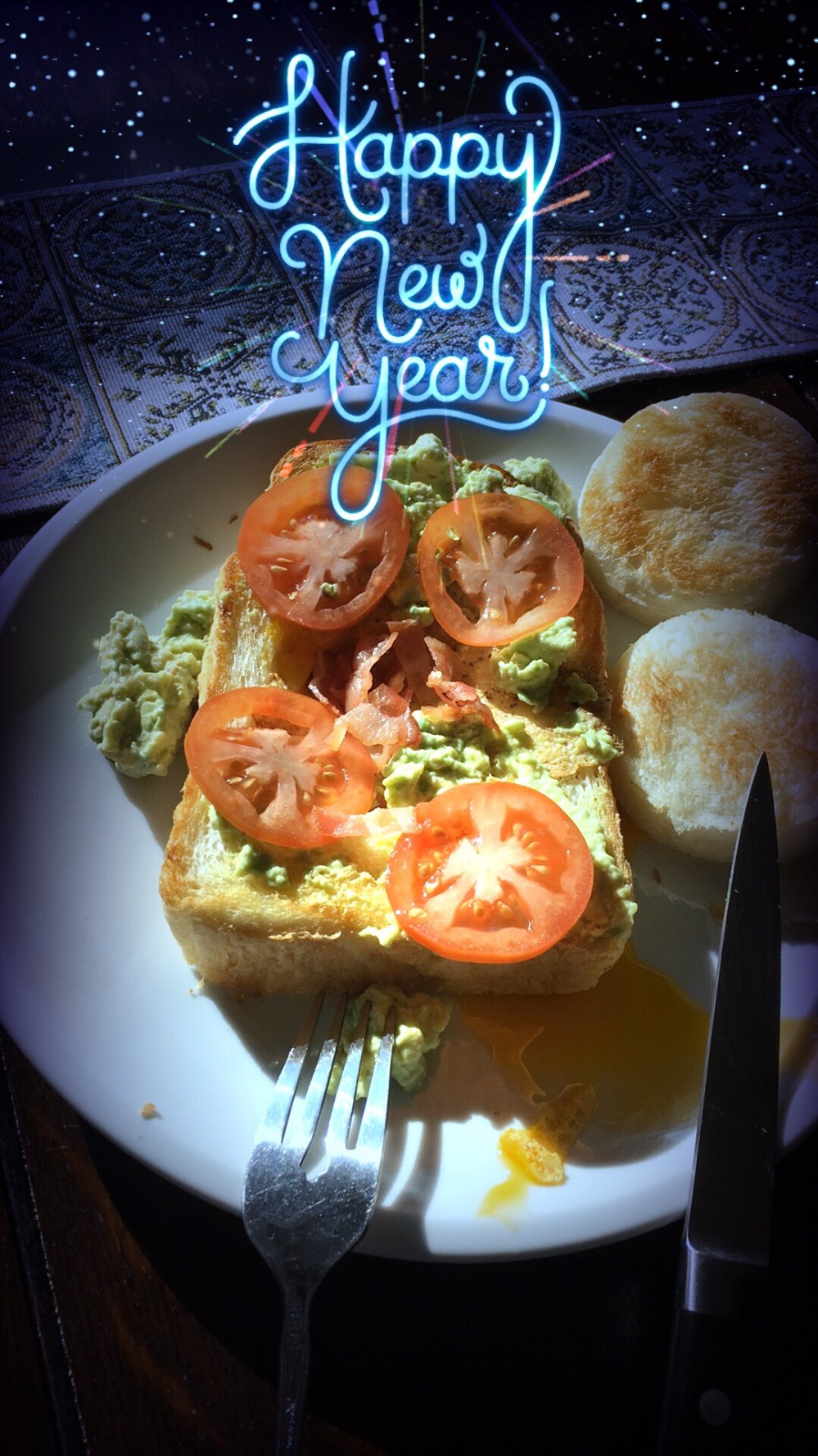 Turn egg toast, cook to desired taste. Remove toast to plate, slather with avocado mixture, top with more bacon and sliced tomato. Enjoy your BETAS! With love and well wishes for your best year – happy New Year!