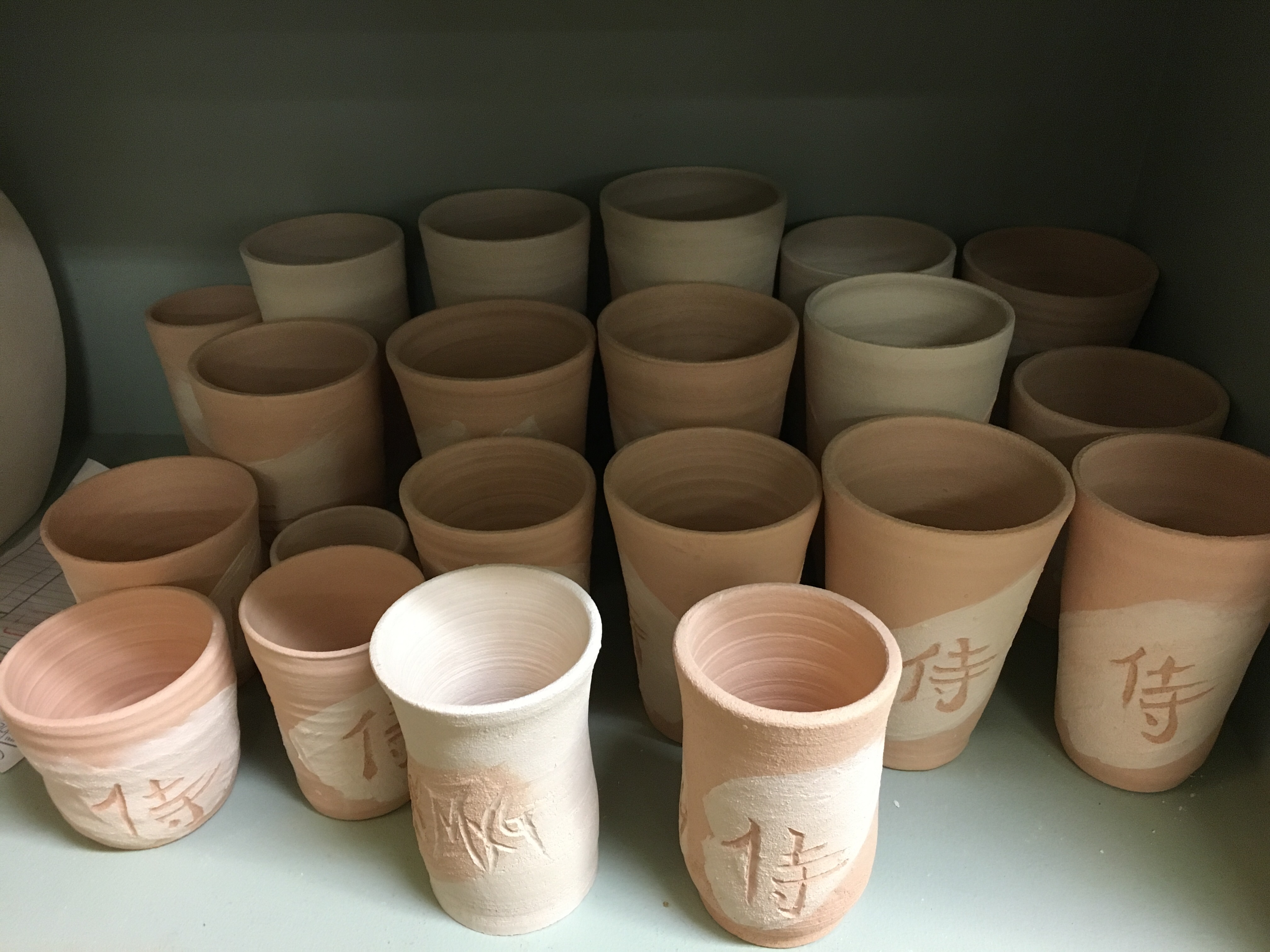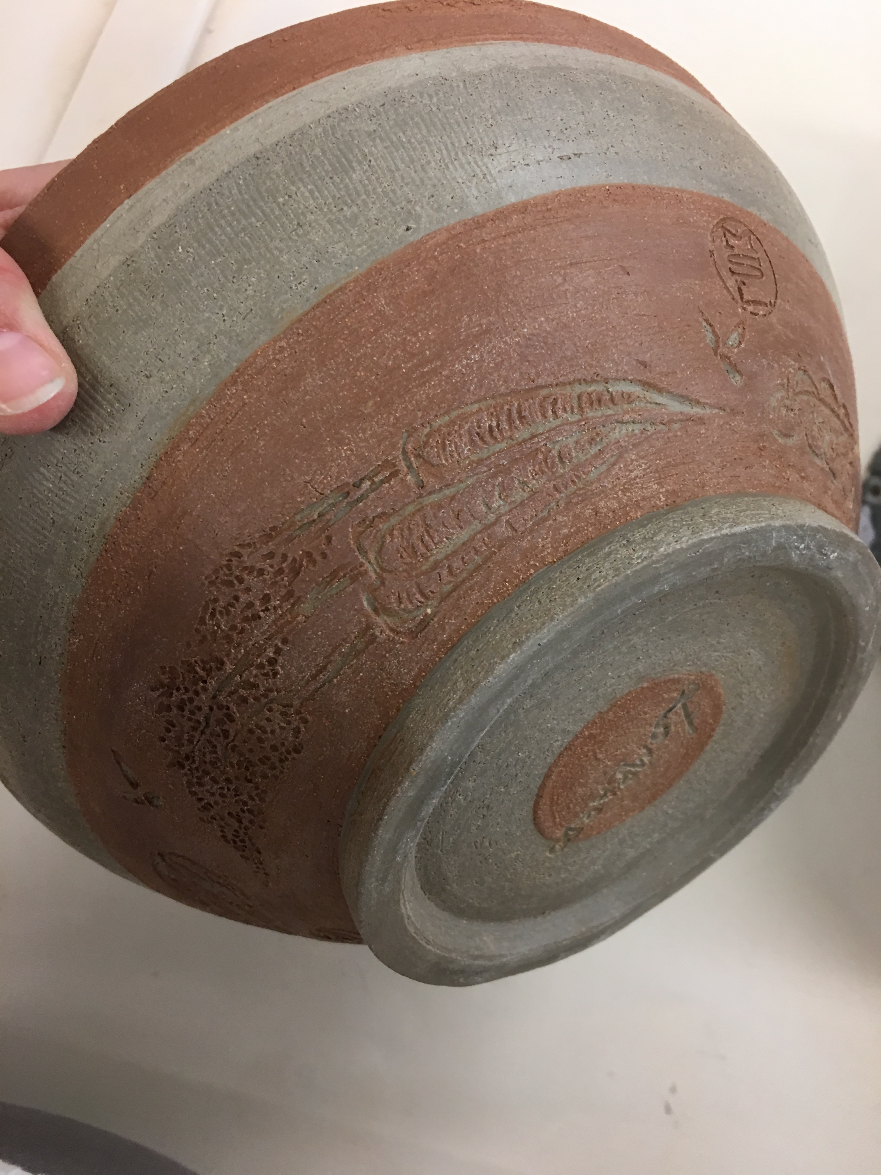 She had a bit of a break from the farm in January, so took one last trip to visit us on Okinawa, our temporary home, thanks to the Air Force! We took in the cherry blossoms at Nakajin-jo Castle, walked along the typhoon -ravaged seawall, ate numerous amounts of sushi, ramen, teishoku-style bento meals at Yayoi, and even a couple of Family Mart Ice Cream cones! We made delicious, homemade breads, pizza, pasta, tiramisu and sourdough starter. But one thing that we both loved, was spending time in the pottery studio. We made drinking vessels and bowls. The bowl pictured below, is one that I threw and Mik graciously carved. She used a technique called sgraffito, where clay slip is applied in several layers, then cut or carved away to show the decoration or design. She became my teacher, reminding me to trust myself, feel the clay and enjoy the process. I will be forever grateful for this special time we shared.