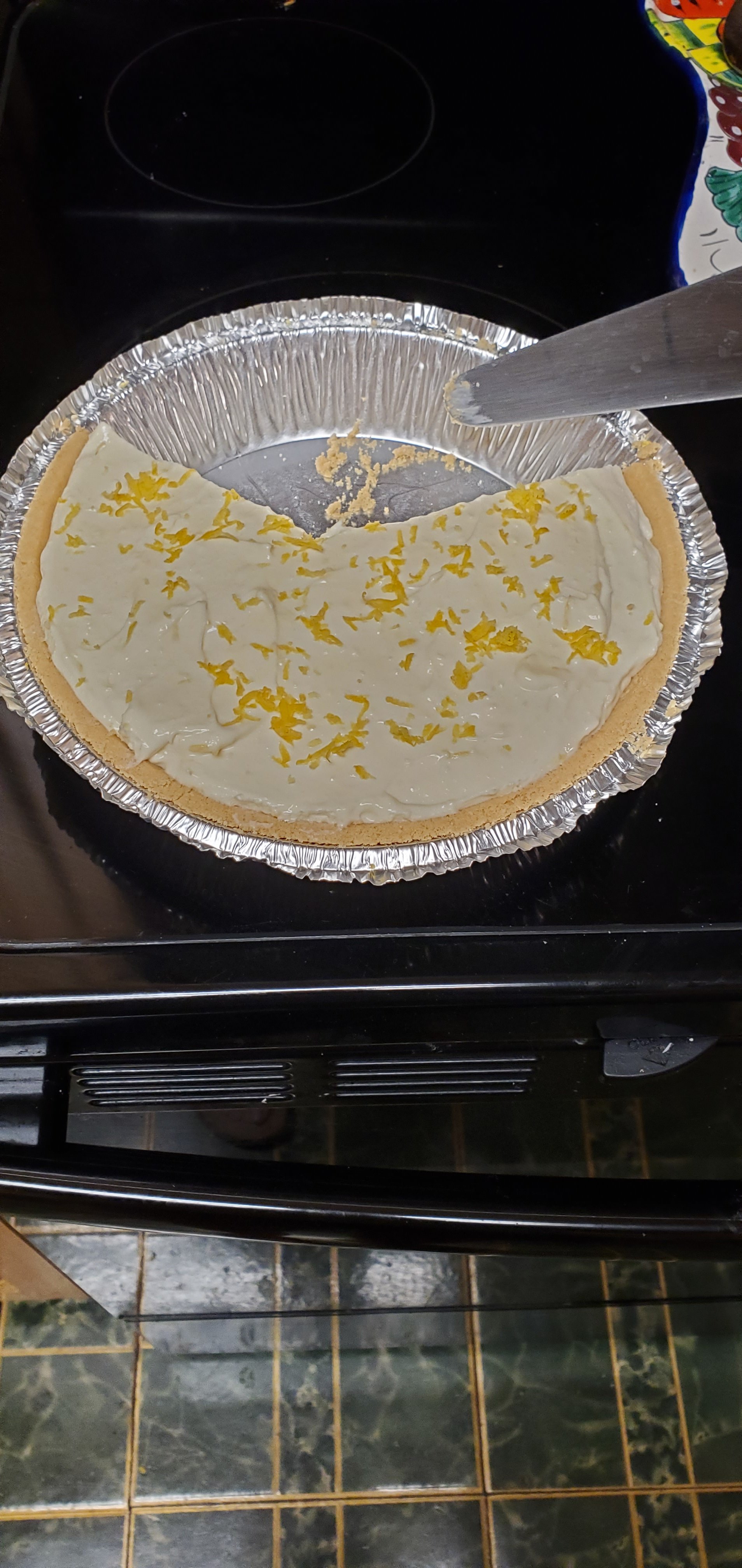 Combine cream cheese, sweetened condensed milk, lemon juice, and 2 T lemon zest in a large bowl; using a hand mixer, process until smooth. Pour into prepared pie shell, top with remaining lemon zest and chill for 2 hours… or you can put it in the freezer for 6 hours and enjoy a lightly frozen version.